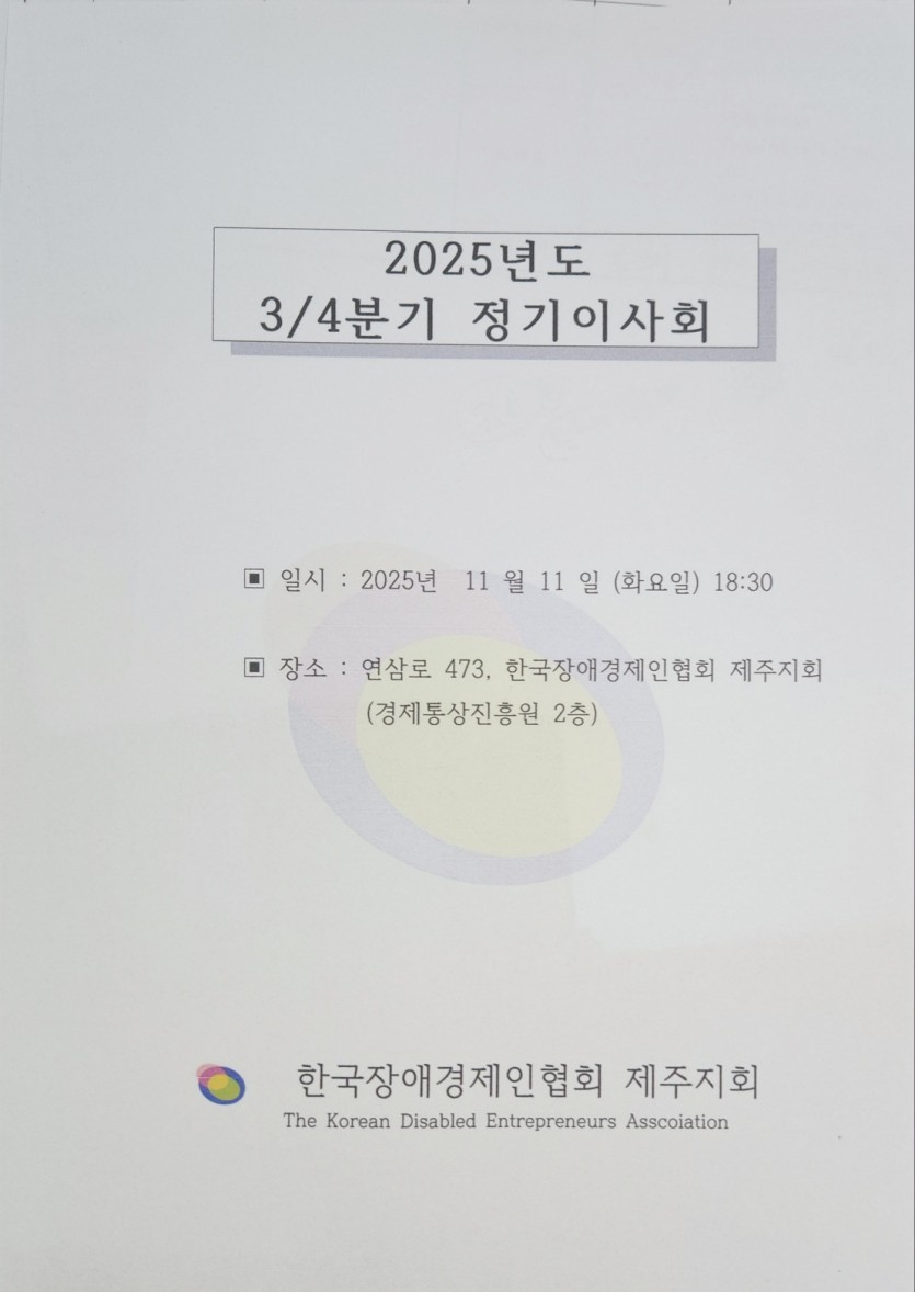 * 장 소 : 한국장애경제인협회 제주지회 사무실 (제주시 연삼로 473,경제통상진흥원 2층)