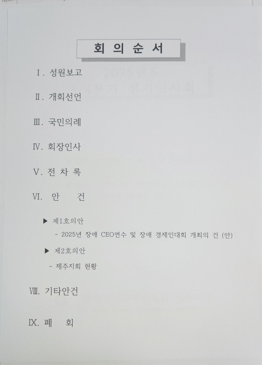 1) 제1호의안 2025년 장애 CEO연수 및 장애 경제인대회 개최의 건