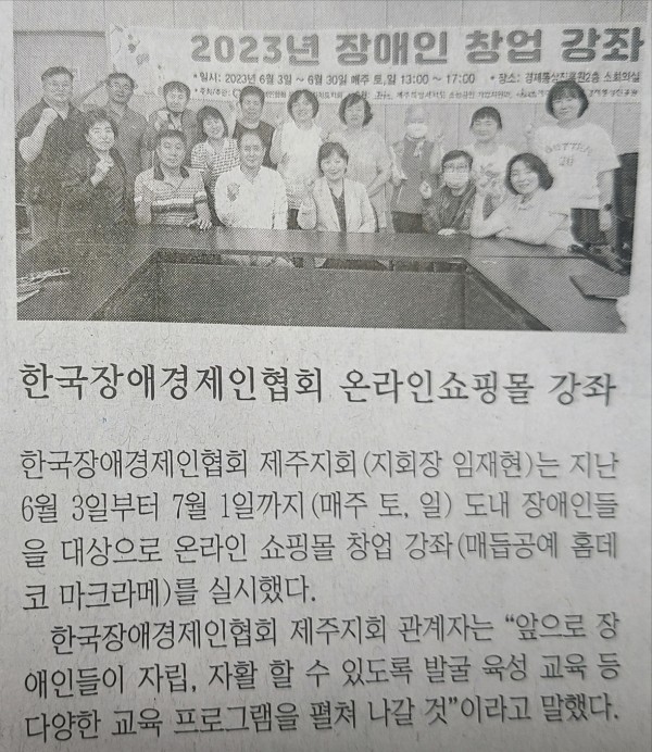 보도자료 2023 장애인 온라인 쇼핑몰 창업강좌 관리자 0 2023-07-04 17:34:11 1,078 이번 우리 협회에서 주관,주최하는 2023년 온라인 쇼핑몰 창업강좌가 한라일보에 게재되었음을 알려드립니다. 한국장애경제인협회 제주지회 (회장 임재현)와 제주 제일플란트치과 (대표원장 조정민) 업무협약(MOU) 체결 2023 손영준 자문위원 제주자원봉사센터장 취임 광고게재-한라일보 목록보기 지회소개 인사말 지회개요 지회연혁 조직도 오시는길 주요사업 판로지원및공동구매 장애경제인위상제고 장애기업창업촉진 정책개발/홍보 경영애로상담 소액수의계약 추천제도 참여안내 후원안내 회원안내 커뮤니티 1:1상담 알림마당 공지사항 협회소식 보도자료 지회갤러리 자료실 신청서 장애인기업법 기타
